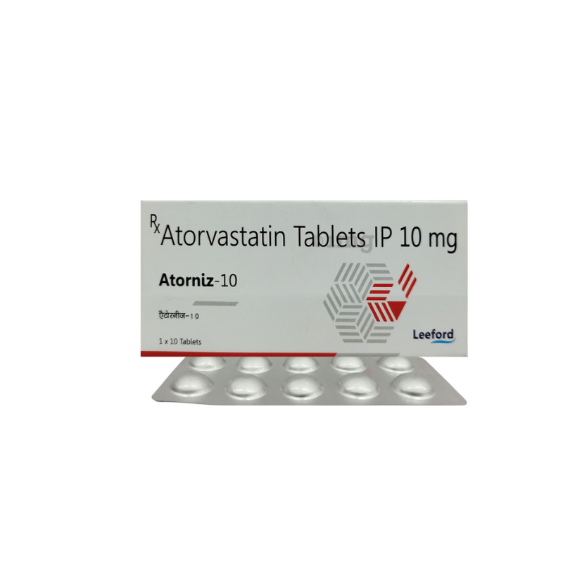 Atorniz-10 mg Tablet contains Atorvastatin, a medicine belonging to the statin class. It works by reducing “bad” cholesterol (LDL) and triglycerides while increasing “good” cholesterol (HDL) in the blood, helping lower the risk of heart-related conditions. Atorniz 10mg Tablet is a widely prescribed medicine and is regarded as safe for long-term use when taken as per the doctor's advice. It can be taken with a meal or on an empty stomach. You can take it at any time of the day, but try to take it at about the same time each day. Most people with high cholesterol do not feel ill, but stopping the medicine may increase cholesterol levels, thereby increasing the risk of heart disease and stroke. Atorniz-10 mg Tablet contains Atorvastatin, a medicine belonging to the statin class. It works by reducing “bad” cholesterol (LDL) and triglycerides while increasing “good” cholesterol (HDL) in the blood, helping lower the risk of heart-related conditions.
